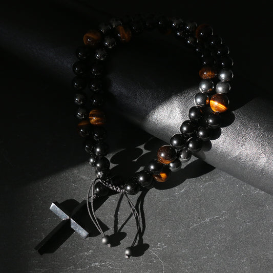 Tiger Eye & Black Obsidian, Square Flat Beads Bracelet