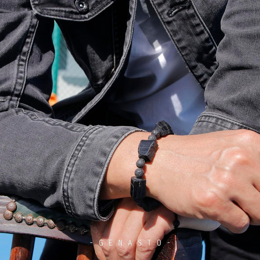 Black Tourmaline Lava Rock Bracelet, 8mm