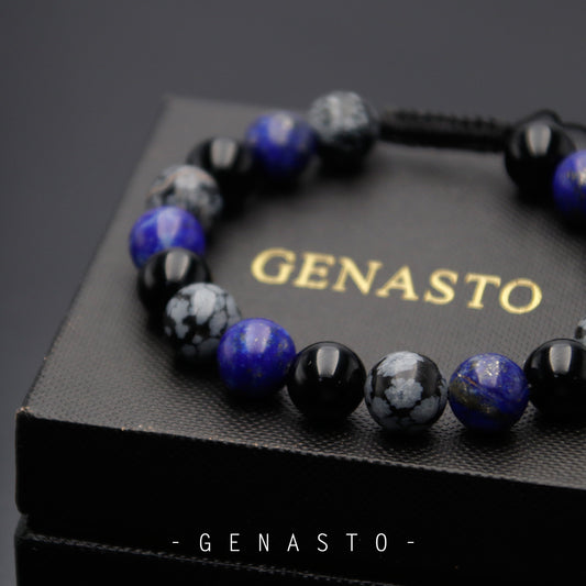 Lapis Lazuli, Snowflake Obsidian & Black Obsidian, Single-layer Bracelet, 10mm