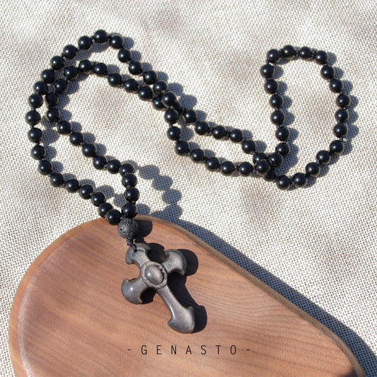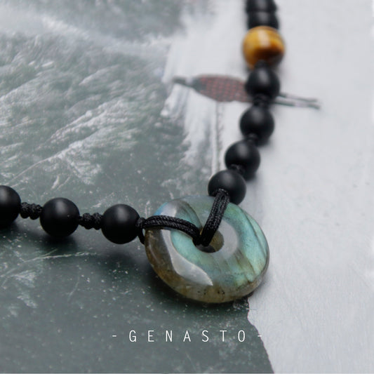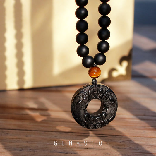 Obsidian Beaded Pendant, Nine-tailed Fox