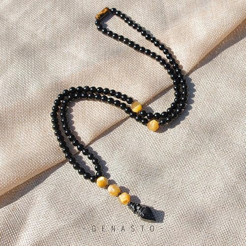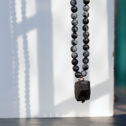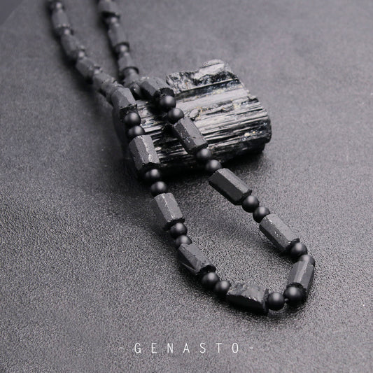 Black Tourmaline Black Obsidian Necklace Y Chain