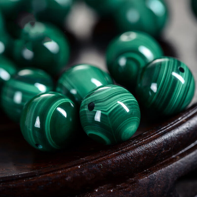 Malachite is a copper carbonate mineral. It is a low hardness but beautiful stone, very popular in the design concept of various luxury goods in Europe and the United States, there are many jewelry design elements using this linear green texture, unique and interesting.