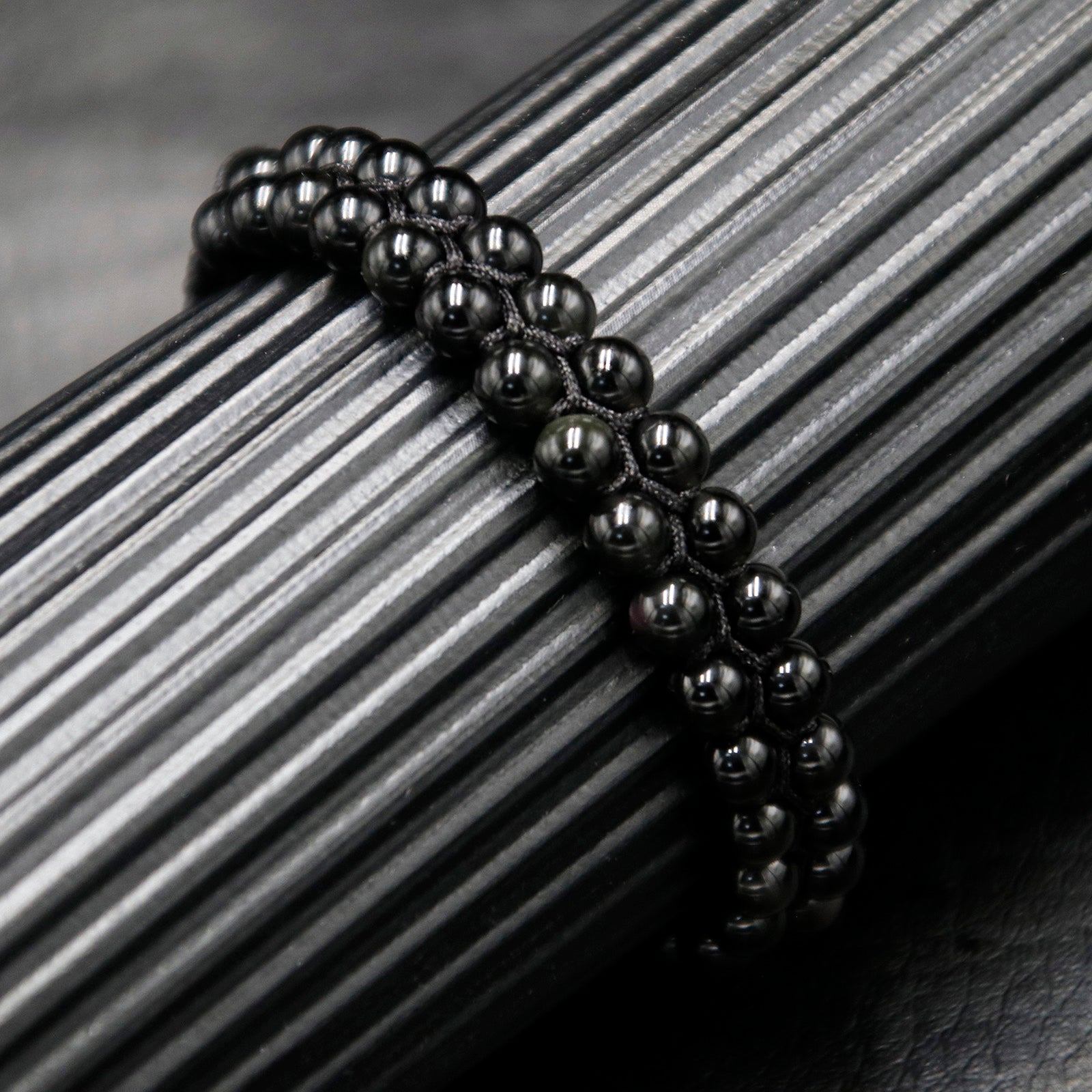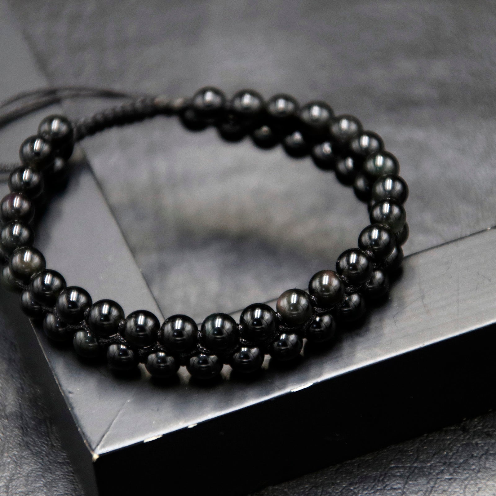 - DURABILITY CRAFTMANSHIP - The obsidian stone beaded bracelet for men are braided with black durable nylon string and smart adjustable knot never worry about string broken and wrist size problem or elastic grip hand hair.