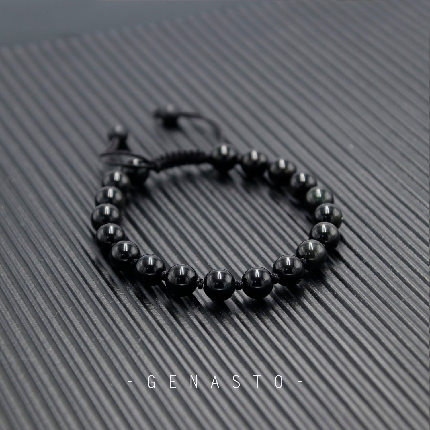 - HANDMADE BEADED BRACELET - Obsidian beads bracelet for men are braided with durable black nylon string and an adjustable knot to fits most wrist.
