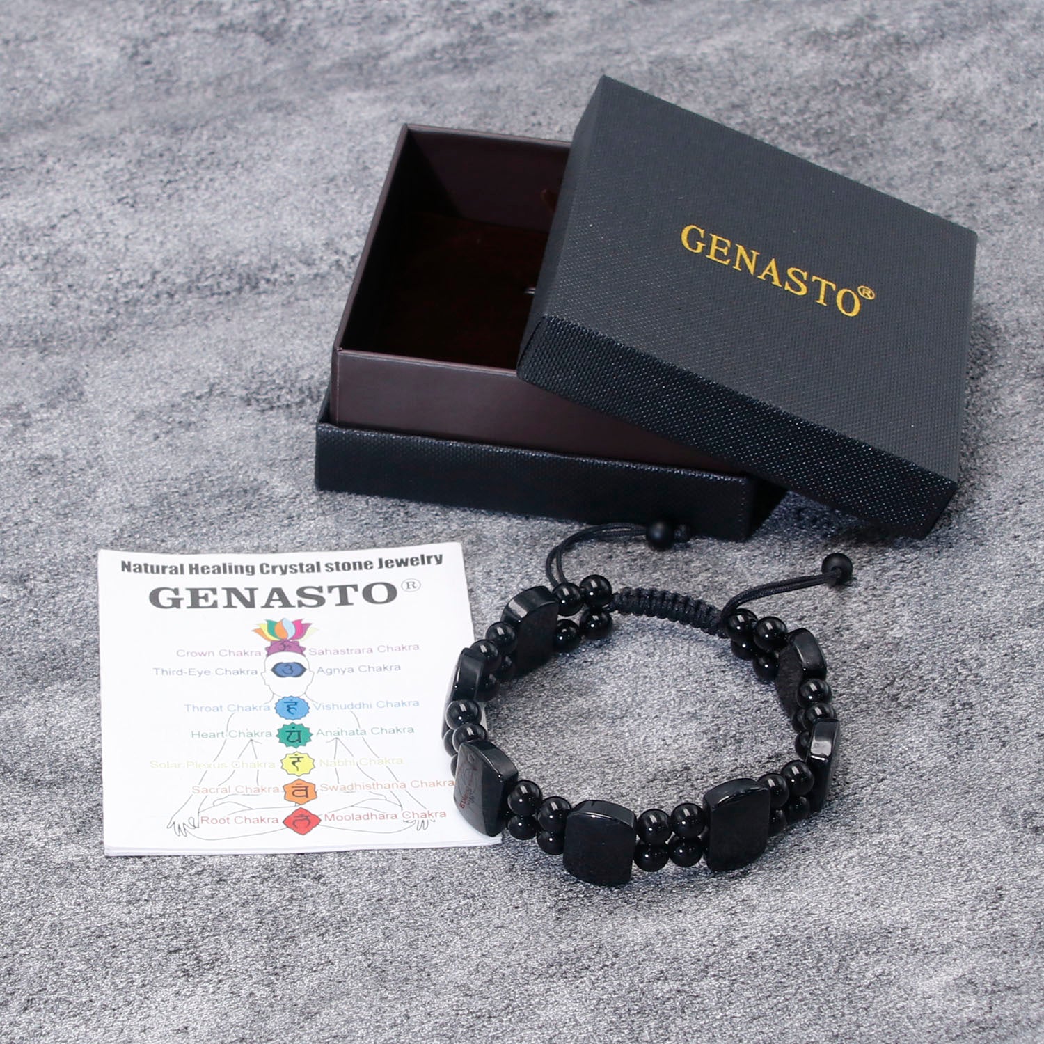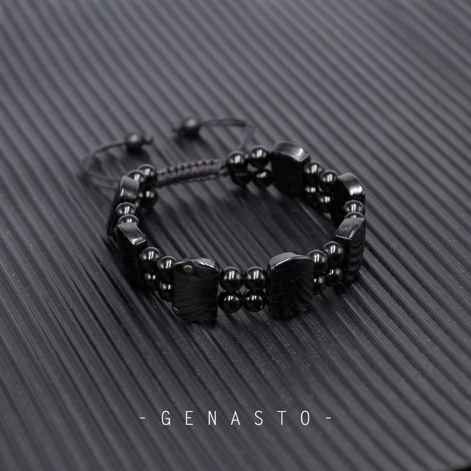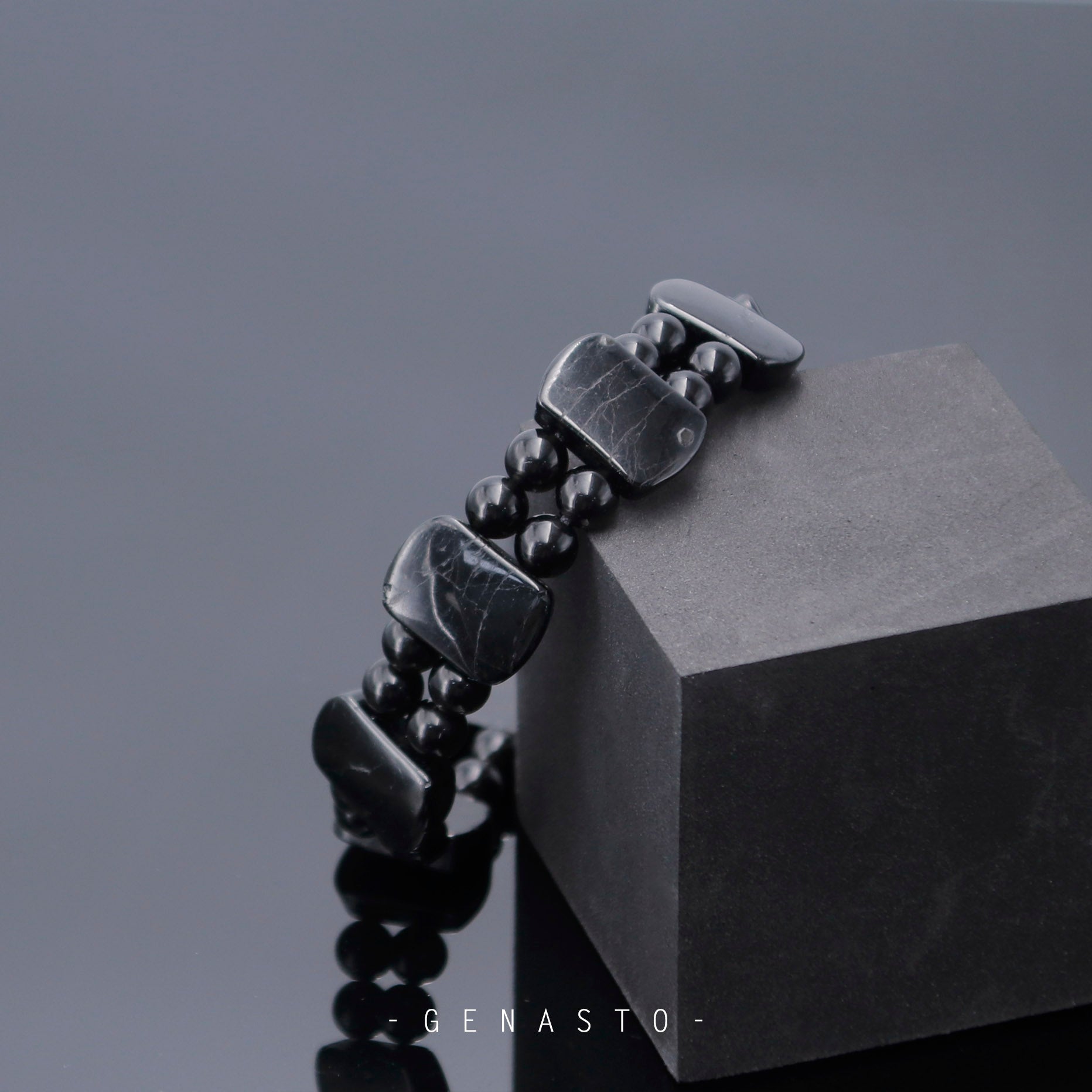 Black Tourmaline & Black Obsidian Square Flat Beads Bracelet