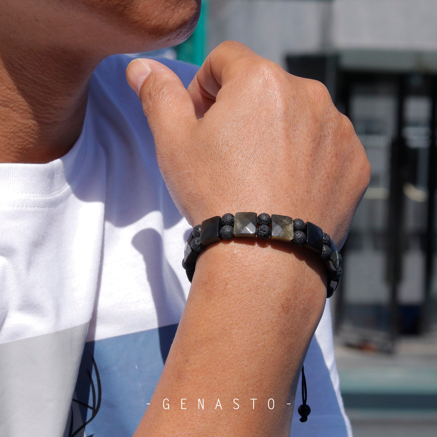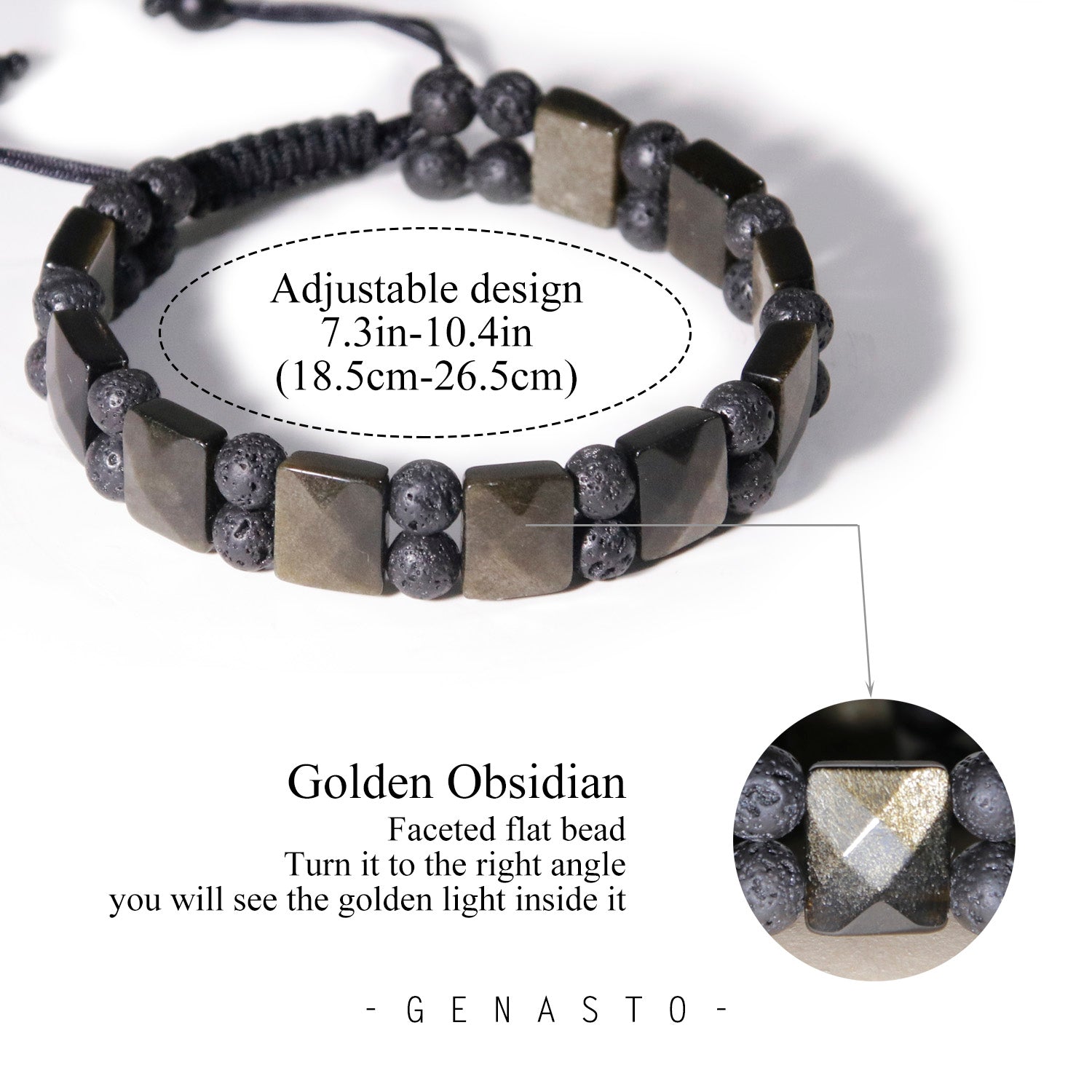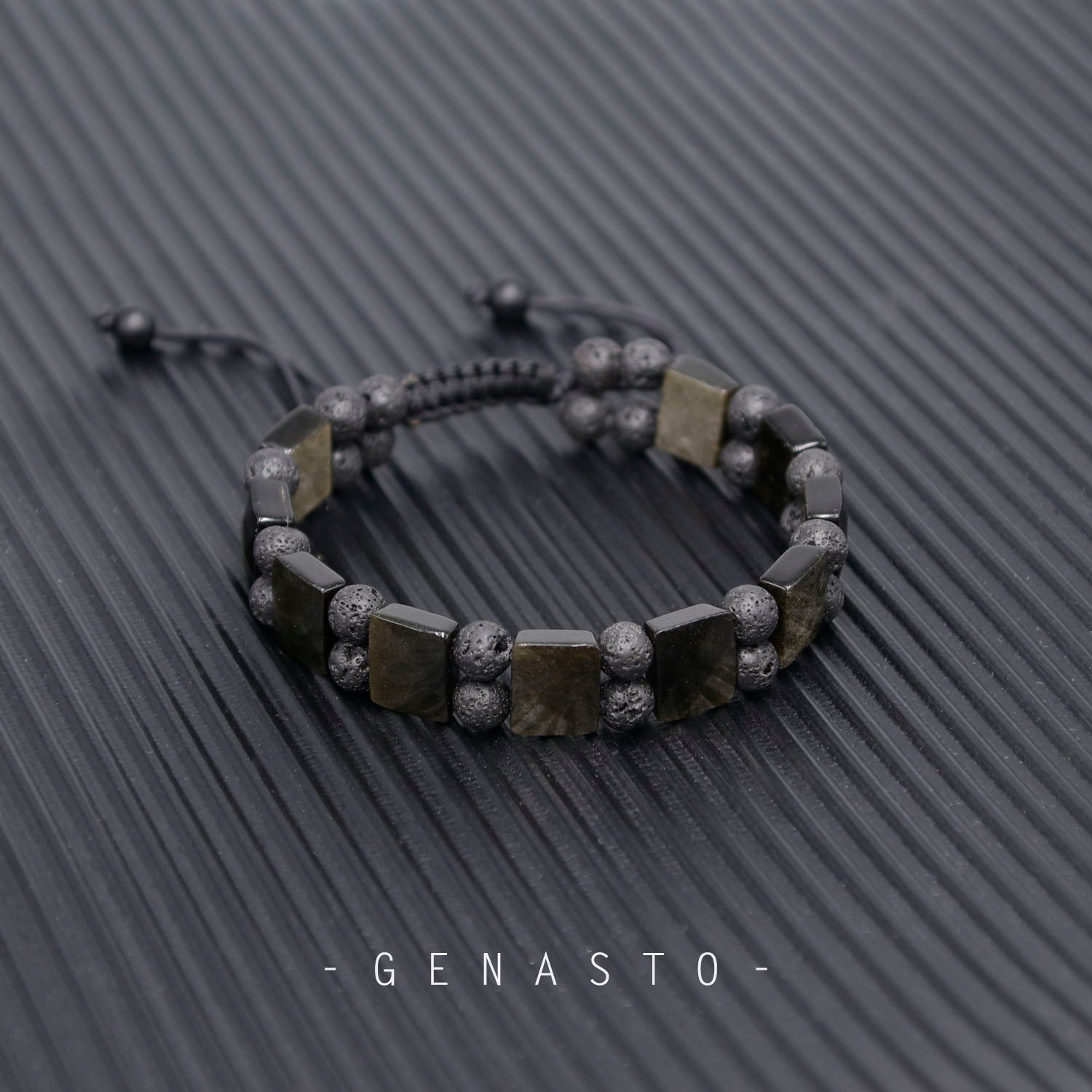 Golden Obsidian & Lava Rock, Square Flat Beads Bracelet