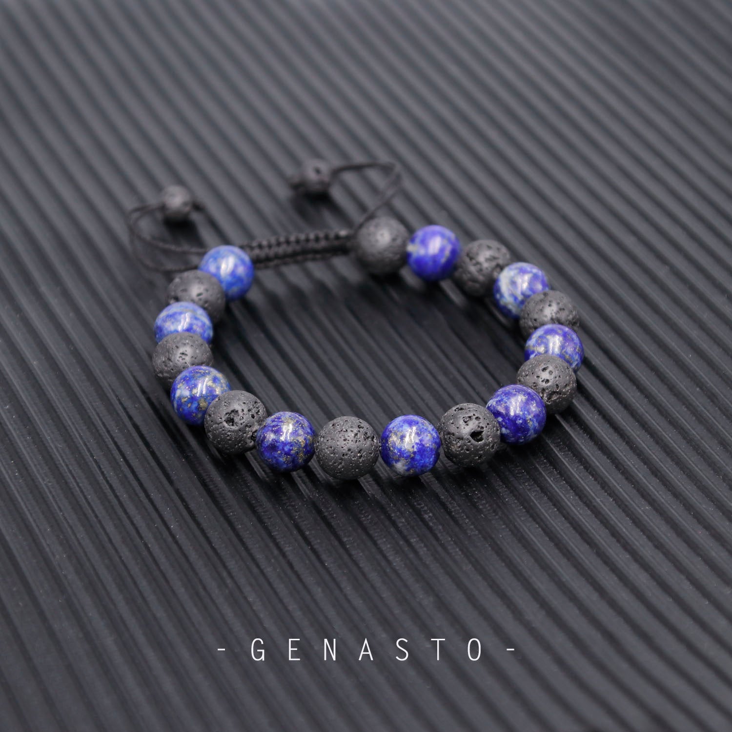 Lapis Lazuli & Lava Rock, Single-layer Bracelet, 10mm