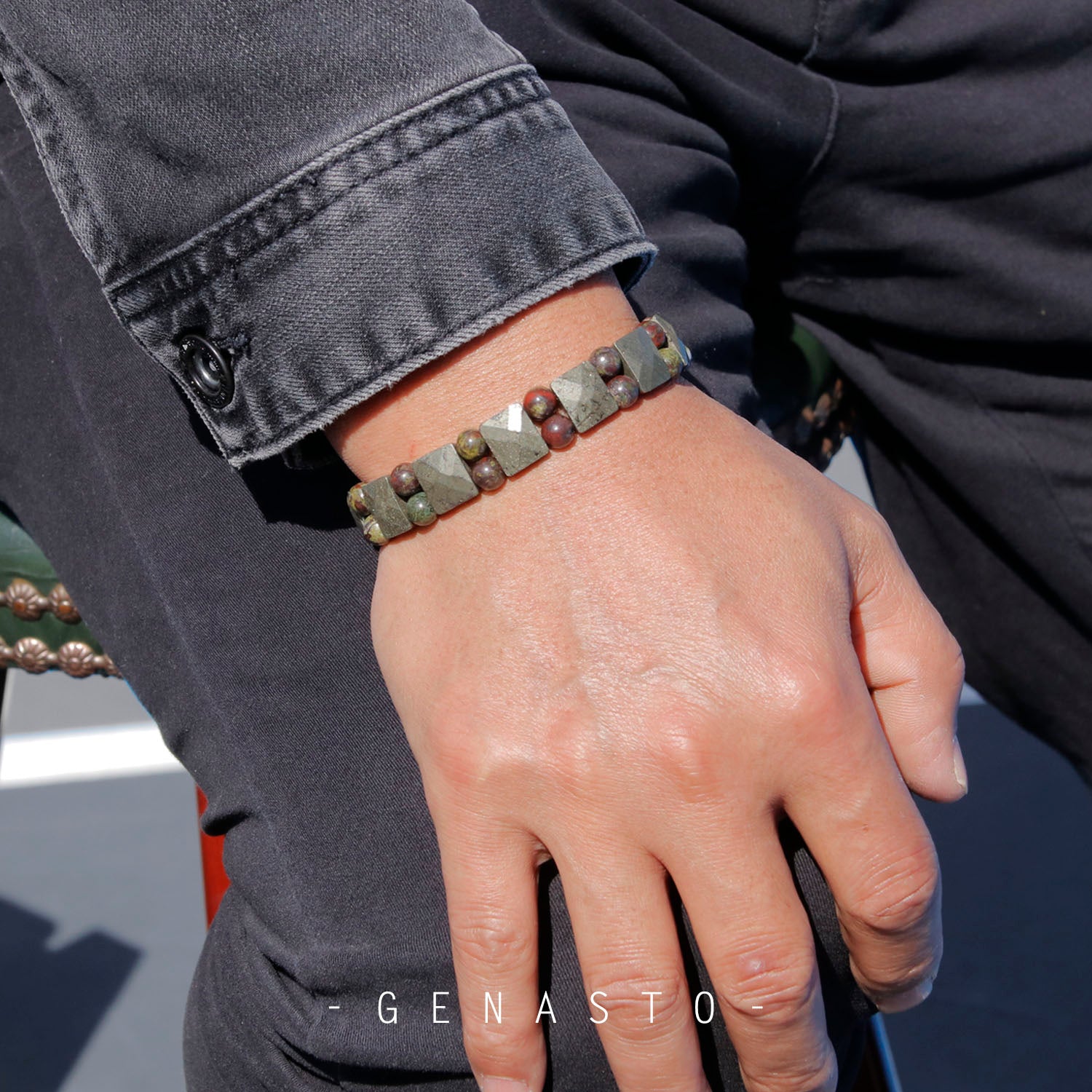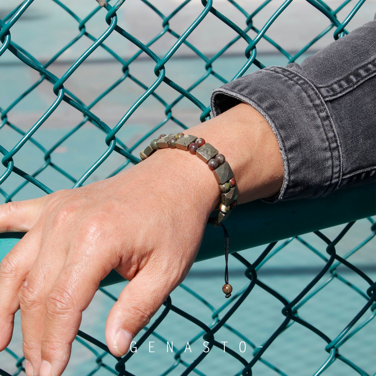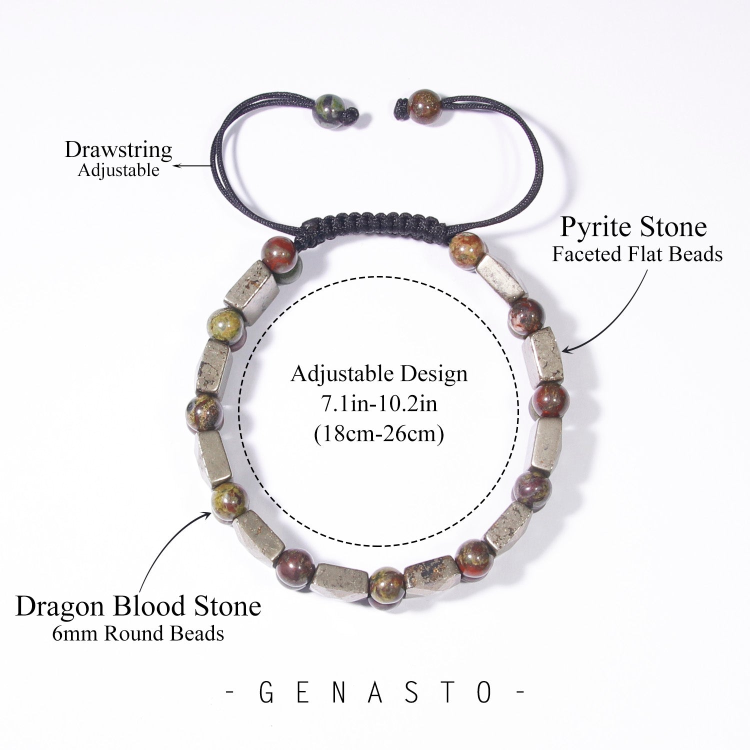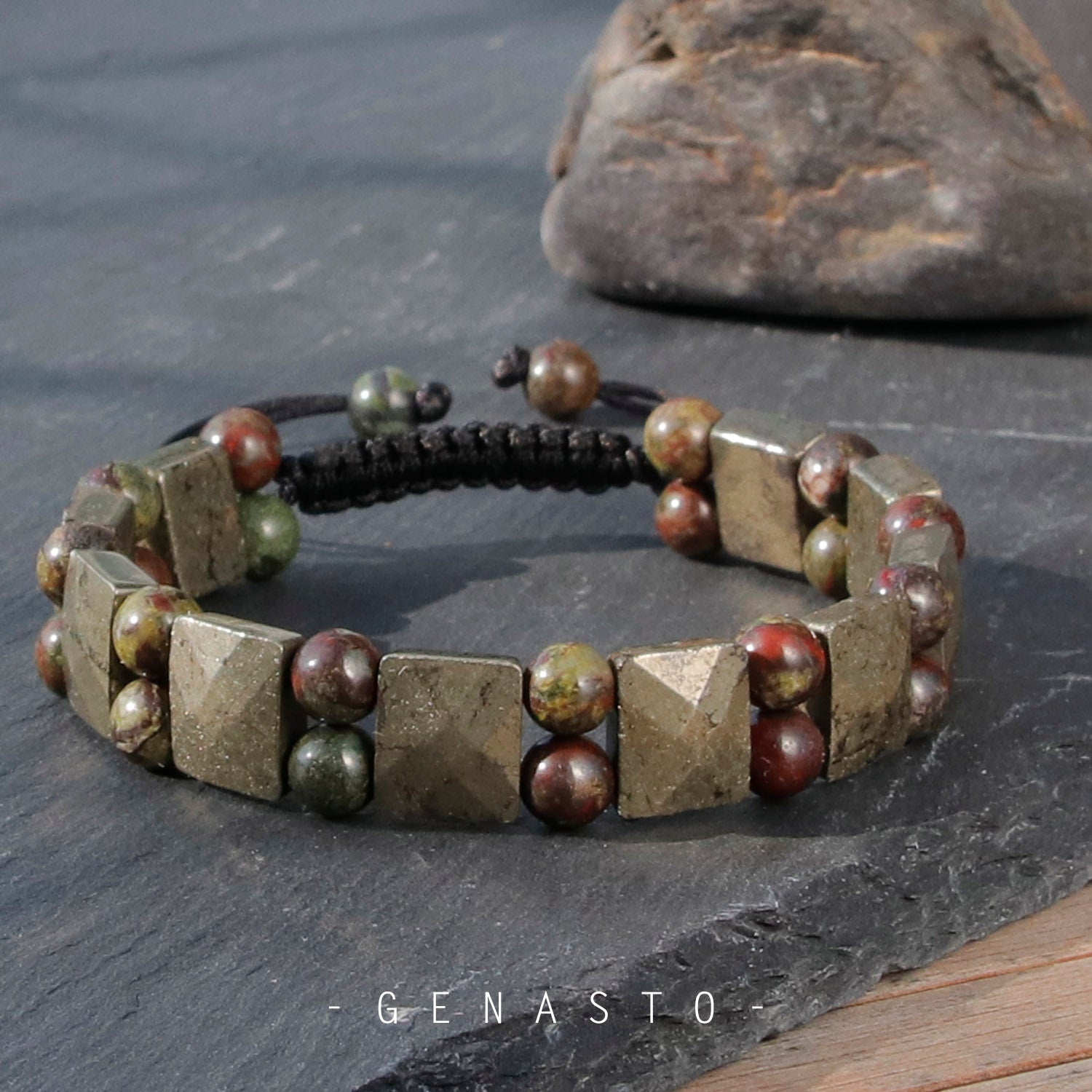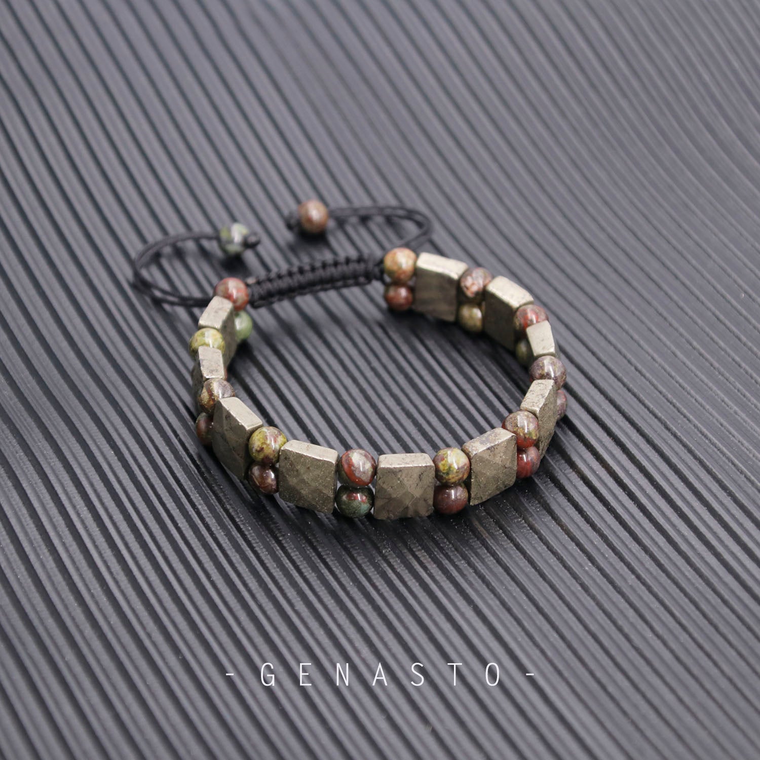 Pyrite & Dragon Blood Stone, Square Flat Beads Bracelet