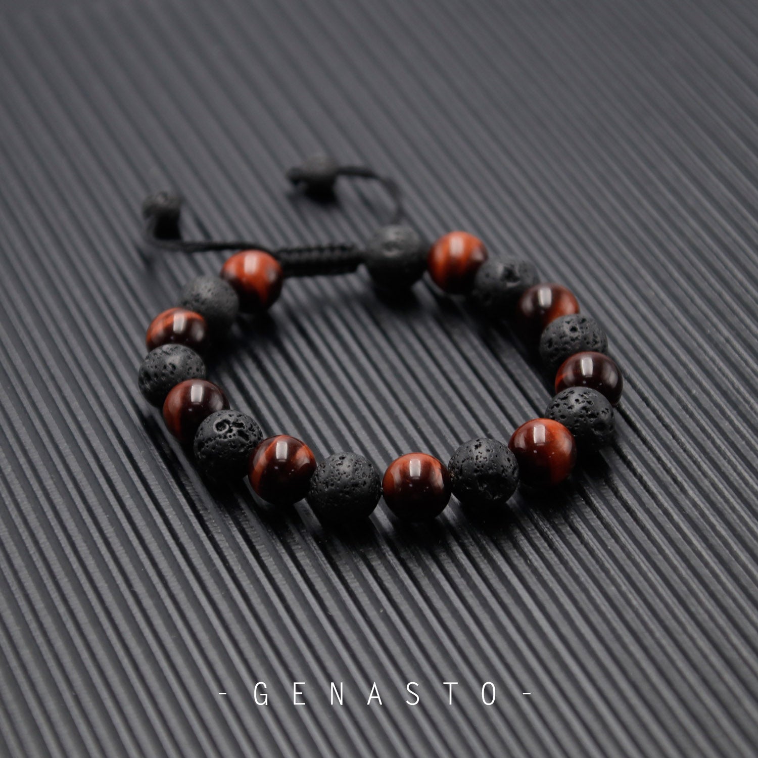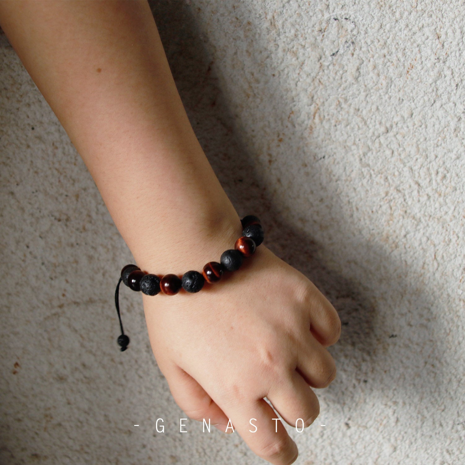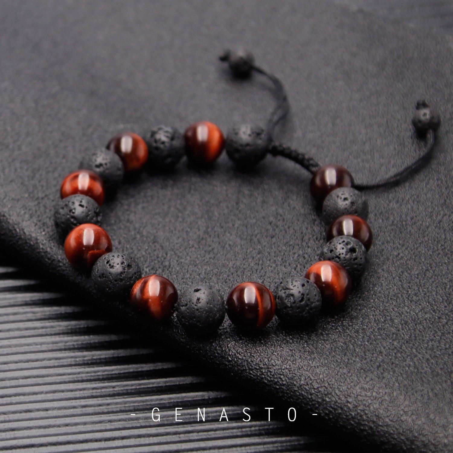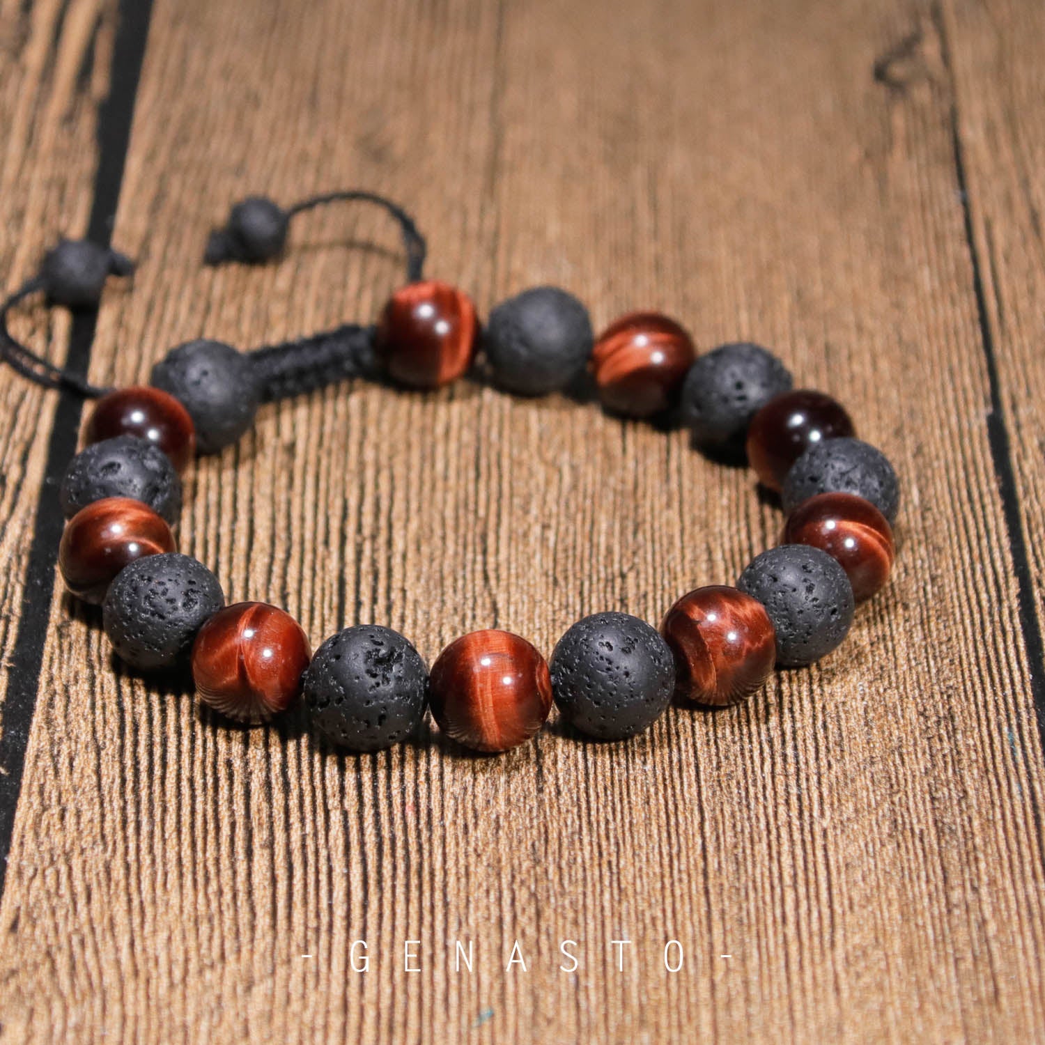 Red Tiger Eye & Lava Rock, Single-layer Bracelet, 10mm